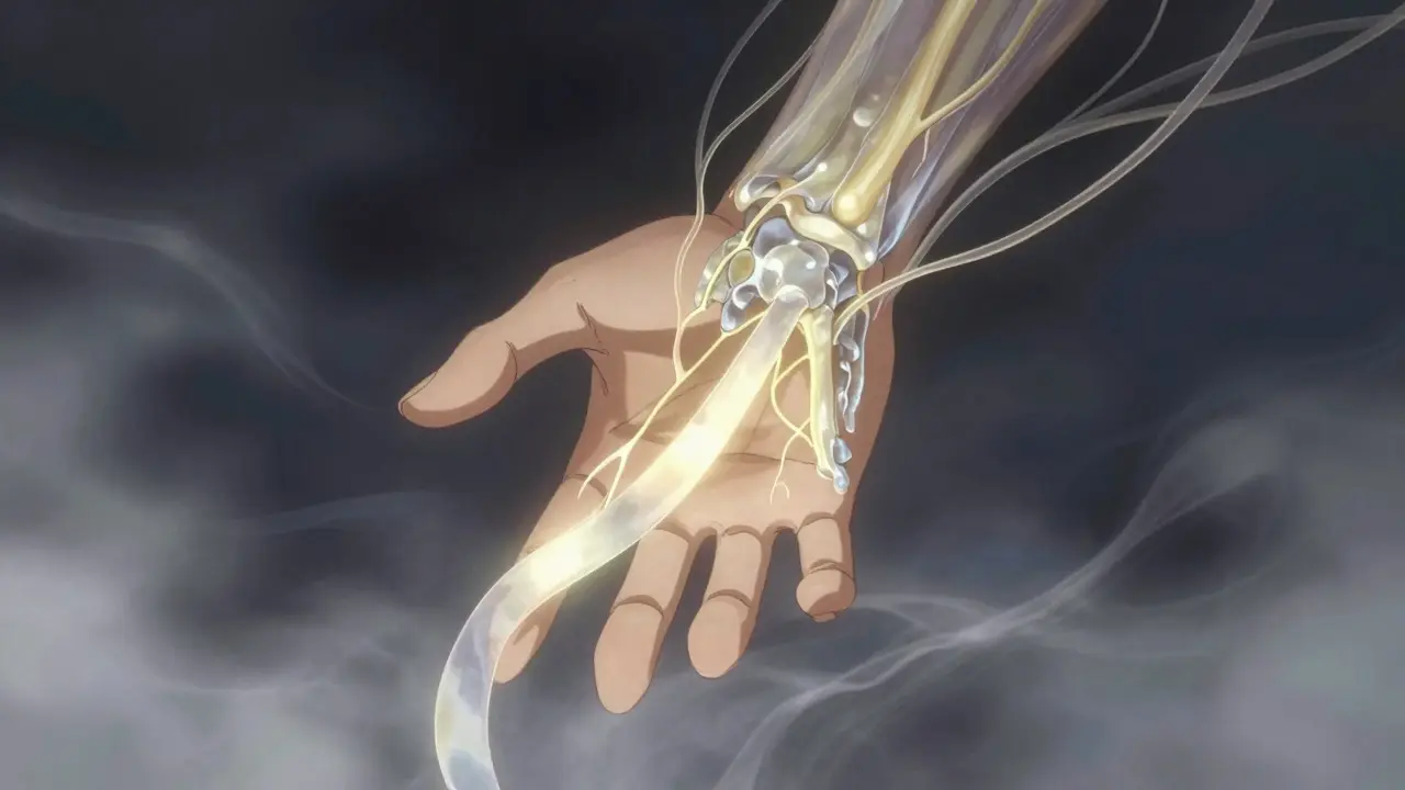 Your wrist isn’t just bone and skin. Inside it, there’s a narrow tunnel made of eight small carpal bones on the bottom and a tough ligament on top. Nine tendons and the median nerve pass through this space. The median nerve controls sensation in your thumb, index, middle, and half your ring finger. It also powers the small muscles at the base of your thumb. When that tunnel gets too crowded - from swelling, fluid retention, or repetitive motion - the nerve gets crushed. Normal pressure inside the tunnel is 2-10 mmHg. In carpal tunnel syndrome, it spikes above 30 mmHg. That’s like squeezing a garden hose so hard the water stops flowing.How Do You Know It’s Carpal Tunnel and Not Just a Bad Night’s Sleep?