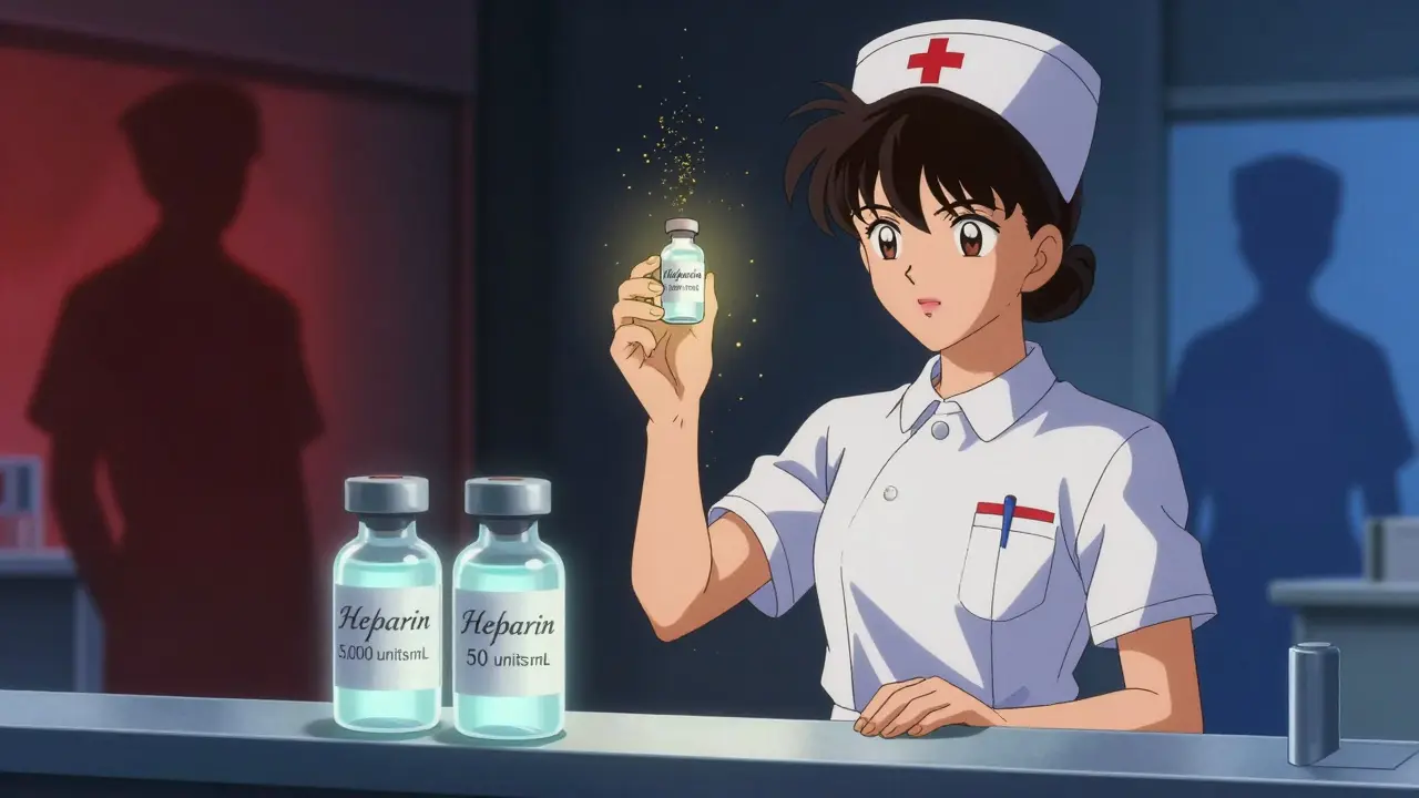 Look-alike, sound-alike drugs are a huge problem. Think of prednisone and prednisolone. They sound almost identical. Without clear labeling, a nurse might grab the wrong one. Or take heparin: one vial is 5,000 units/mL, another is 50 units/mL. Mistake one for the other, and you’re giving a 100-fold overdose. That’s not hypothetical. Nurses on AllNurses.com have shared real stories where this exact mix-up was caught just in time.